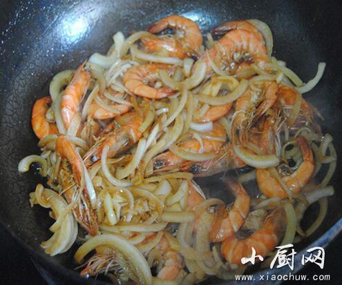 8.洋葱油爆虾就做好了,简单易学,味道超赞。上班族都赶得上享受美味。