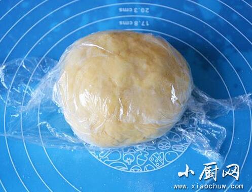 3.用保鲜膜将面团包裹住,让其发酵比原来的体积大2倍。