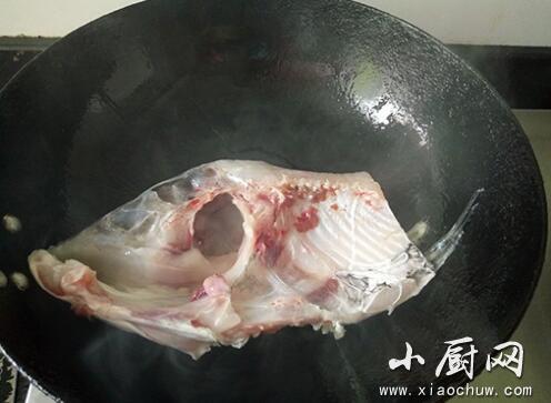 3.起锅热油,大火将有烧热,鱼头外面朝下,先煎。