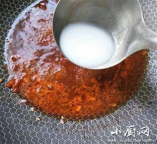 6.起锅,烧热,放入油、蒜末、葱,1勺豆瓣酱烧开后,加入适量生抽、水、米醋、盐、鸡精、白糖、老抽、水淀粉勾兑一下,调成汤汁。
