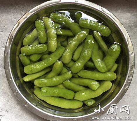 6.将毛豆冷却之后,放到碗里。