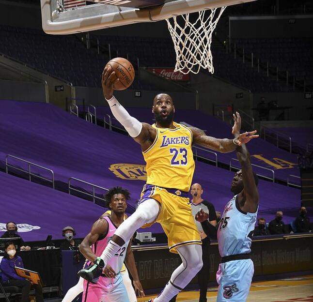 2021年2月21日 2020-2021赛季NBA常规赛继续进行,洛杉矶湖人队(22胜9负)遭遇2连败。今天进行的湖人主场对阵热火的比赛,看点十足,上赛季总决赛两支球队相遇,最终勒布朗和戴维斯笑到最后捧得总冠军。今天戴维斯因伤缺阵,虽然勒布朗得到19分、9个篮板和9次助攻,但努恩得到27分,巴特勒得到24分8个篮板和5次助攻,他们率队在第四节守住领先,卡鲁索错失扳平一投,迈阿密热火队(13胜17负)在客场以96-94险胜湖人队。热火队拿到2连胜,他们报了总决赛落败之仇,湖人队吞下2连败。